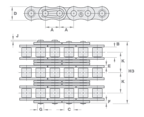 Renold Synergy 100-3-NO12 ANSI / AS Triplex Chain Single Cranked Cottered Link 1-1/4 inch Pitch