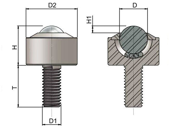 High-Performance Medium Duty Stem Fitting Ball Transfer Unit with 12mm Steel Ball - Load Capacity 30kg - Allow 2-3 Days