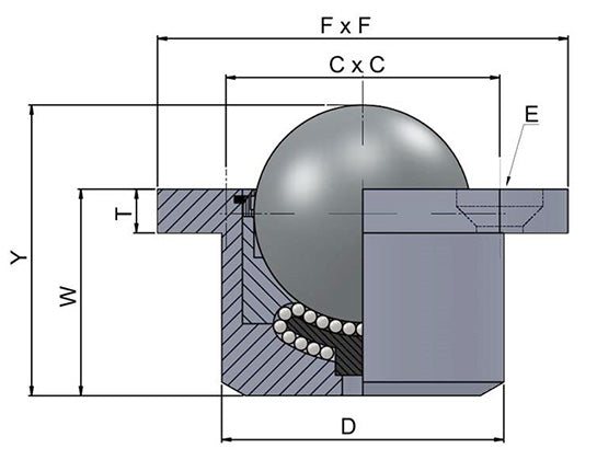 Surface Fixed Top Mount Stainless Steel Ball Transfer Units: Ball transfer units are designed for multi-direction materials handling solutions. This series of transfer units consists of a large load-bearing stainless steel ball running on several smaller support balls contained within a zinc-plated mild steel flanged housing, allowing the large ball to rotate freely. Top mount ball transfer units feature flange-mounted holes that enable users to securely attach them to a flat surface in a top position, ensuring enhanced stability.