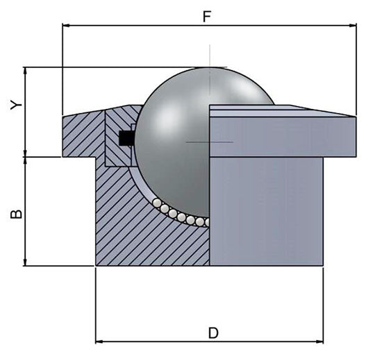 Push Fit Medium-Duty Steel Ball Transfer Unit: Often referred to as "Euro Style Ball Transfer Units" these ball transfer units are designed for multi-direction materials handling solutions. This series of transfer units often named recess mount ball transfer units, consist of a large load-bearing steel ball running on several smaller support balls contained within a recessed zinc-plated carbon steel housing, allowing the large ball to rotate freely. Push-fit ball transfer units effortlessly slot into pre-defined holes, simplifying the assembly process. They are commonly used on conveyor setups and are an ideal solution for the smooth and precise moving of loads.
