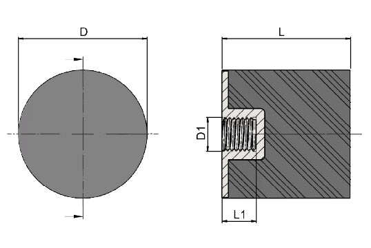 High-Performance Female Rubber Cylindrical Bump Stop 25x25mm M8 Thread