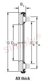 AX Thick Series Needle Roller Thrust Bearings: Needle roller and cage thrust assemblies are a low profile high load thrust bearing assembly and can be used with the CP series thrust washers which are supplied separately. They are made up of a uniform cage which reliably guides a large quantity of needle rollers, the rollers are slightly relieved towards their outer edge to enable uniform load distribution and prevents any edge damage occurrence. |