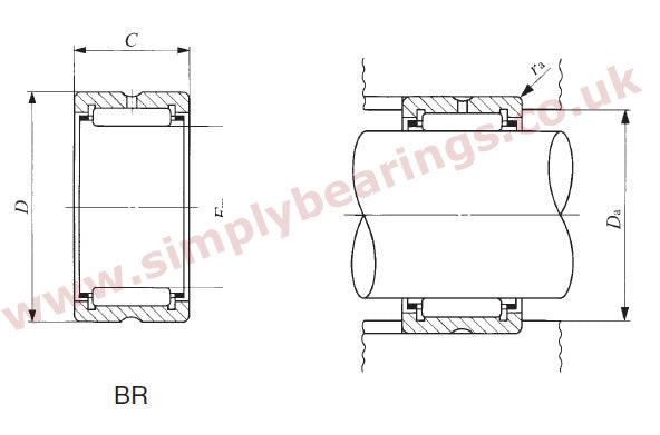 Imperial Machined Type Needle Roller with Flanges: Supplied without the inner ring for instances where a mating bearing surface already exists or an inner ring is to be used & has the benefit of flanges in the outer race to compensate for small misalignments and small side loads. Benefits: Economical replacement, needles are retained within machined flange of the outer race. |