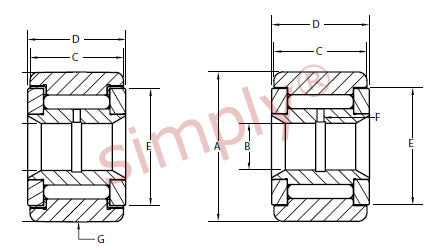 | Cam Yoke Roller: These bearings are easily mounted and ideally suited for many Cam or Track roller applications with moderate loading and shock. The bearings are sealed to help prevent contamination and retain lubrication. |
