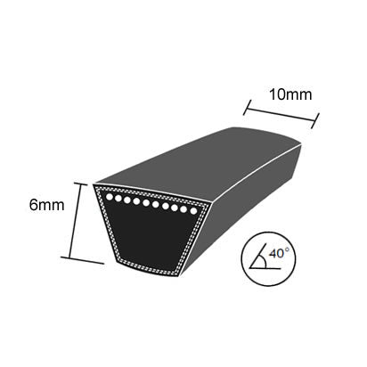 3L Section Mower Belts: Wrapped V-Belts with a coloured dry cotton cover, the belts have a large diameter of ARAMID (Kevlar) cords, impregnated with special compound which eliminates the need for re-tensioning and offers