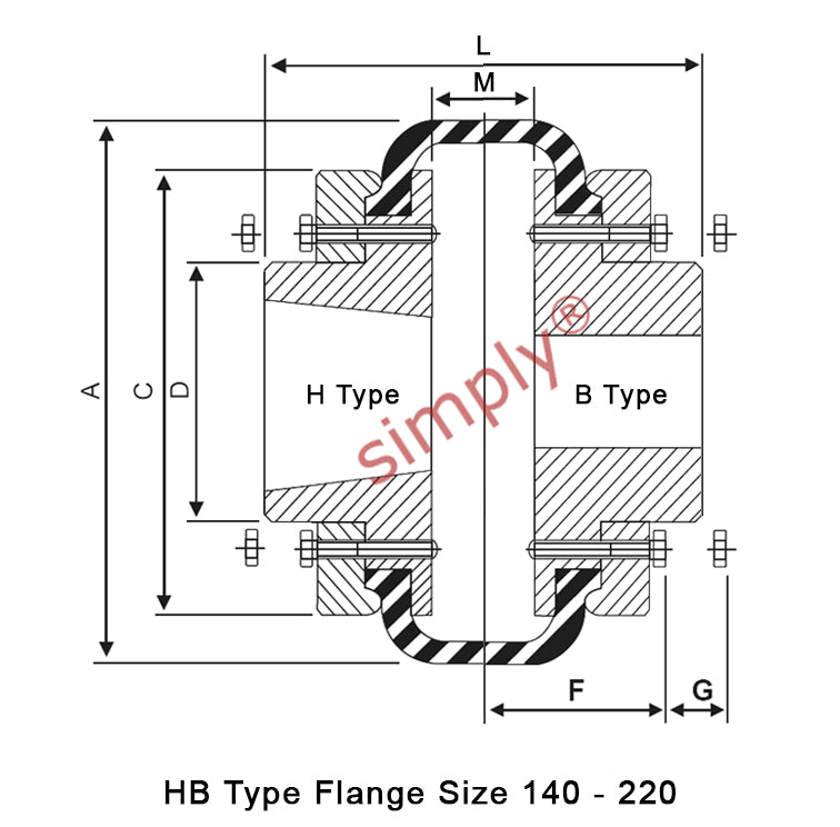 Supplied as a complete coupling assembly (except for tapered locking bushes as you will need to select the shaft size for your application). The assembly comprises of 2 steel flanges and a matching tyre element. This coupling assembly is the B type is supplied with a nominally sized pilot bore flange and the H type where the larger diameter of the taper bore is on the opposite side to the tyre clamping flange.