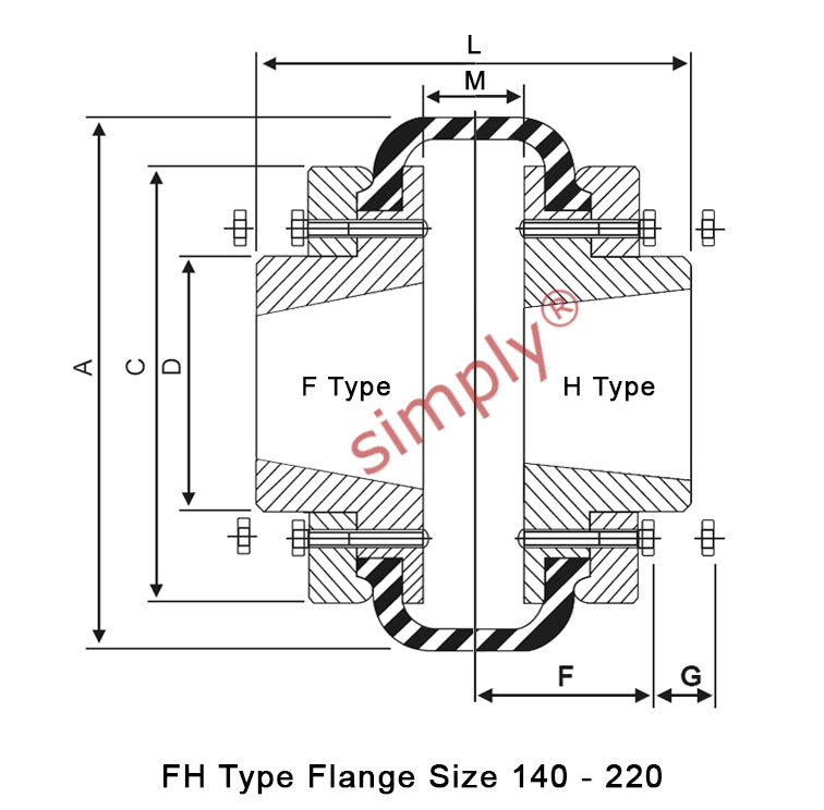 Supplied as a complete coupling assembly (except for tapered locking bushes as you will need to select the shaft size for your application). The assembly comprises of 2 steel flanges and a matching tyre element. This coupling assembly is the F type where the larger diameter of the taper bore is on the same side of the tyre clamping flange and the H type where the larger diameter of the taper bore is on the opposite side to the tyre clamping flange.