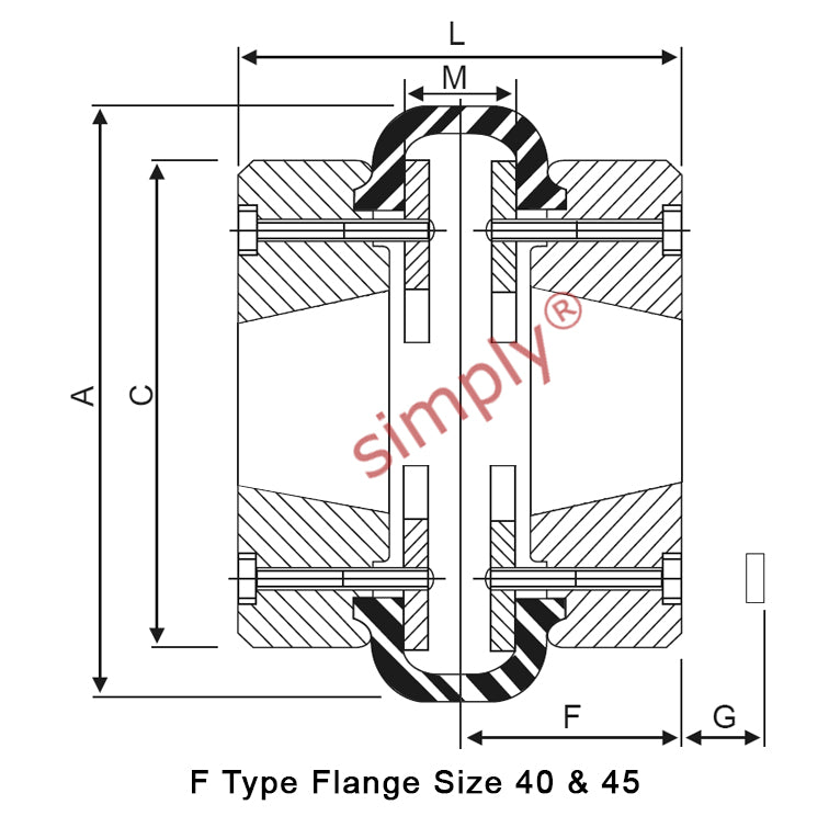| F Type - Flange Face Spacing | = | 22mm |