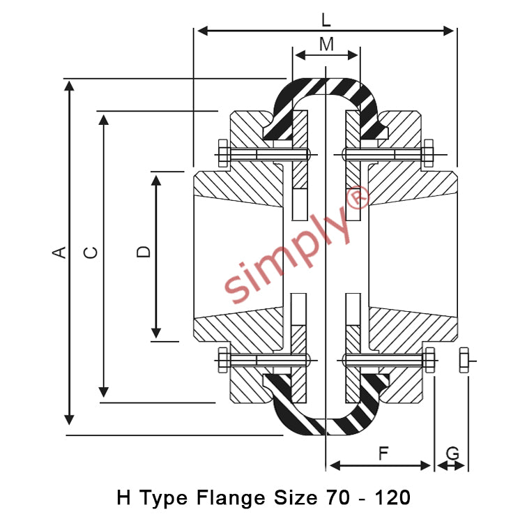 | H Type - Flange Face Spacing | = | 25mm |