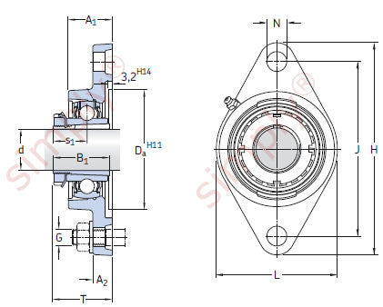 SKF Oval Flanged Y-bearing Units with Cast Housing and Adapter Sleeve: These units have an oval flange and two holes for attachment bolts. A grease fitting in the housing allows the unit to be re-lubricated. This makes them especially suitable for bearing arrangements that operate under high levels of contamination, high speeds, high temperatures or relatively heavy loads. Note: The appropriate adapter sleeve is not part of the bearing and must be ordered separately. Benefits: Grease fitting allows re-lubrication |