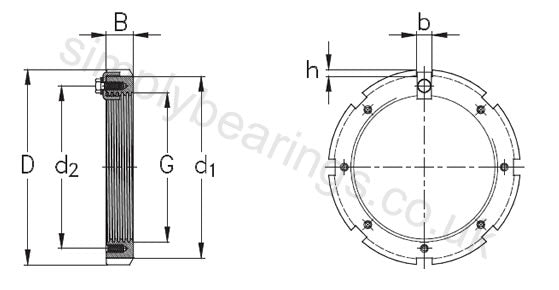 Lock Nuts: Are supplied in a wide range of sizes and are often referred to as shaft nuts, lock nuts or withdrawal nuts depending on their use. They are used to securely locate bearings and other components onto shafts as well as facilitate the mounting of taper bore bearings onto shafts with the use of adaptor sleeves or withdrawal sleeves. Benefits: Efficient, secure, inexpensive, removable and re-useable |