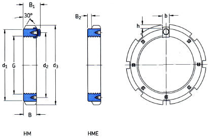 SKF Lock Nuts: Supplied in a wide range of sizes and are often referred to as shaft nuts, lock nuts or withdrawal nuts depending on their use. They are used to securely locate bearings and other components onto shafts and facilitate the mounting of tapered bore bearings onto shafts with the use of adaptor sleeves or withdrawal sleeves.