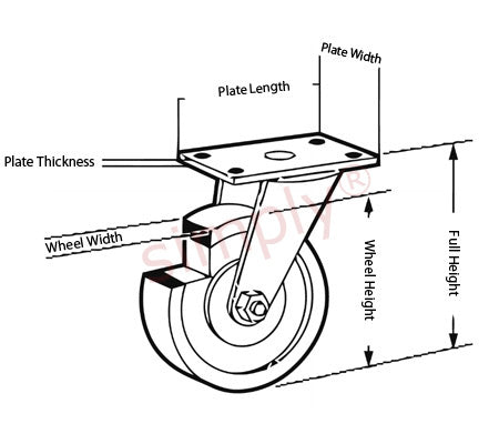 5 inch Swivel Castor Wheel: A handy replacement swivel castor wheel with 360 rotation and includes mounting plate. This wheel is made from solid hard rubber with oiled ball bearings which allow the swivel action. This 5 inch castor wheel has a 70kg weight capacity |