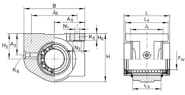 | K5 | = | M8 (for fixing screws to ISO 4762-8.8< |