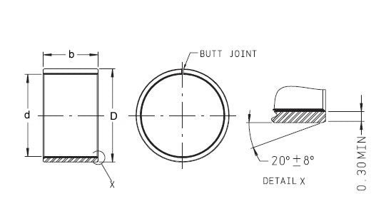 Bronze Backed Plain Steel Bush: Made from a composite material developed specifically to operate with minimal lubrication. This bush bearing consists of three bonded layers - a steel backing strip and sintered porous bronze matrix, impregnated and overlaid with a pigmented acetal copolymer bearing material. The bearing surface is normally provided with a uniform pattern of indents which serve as a reservoir for grease and is designed to provide the optimum distribution of the lubricant over the bearing surface. |