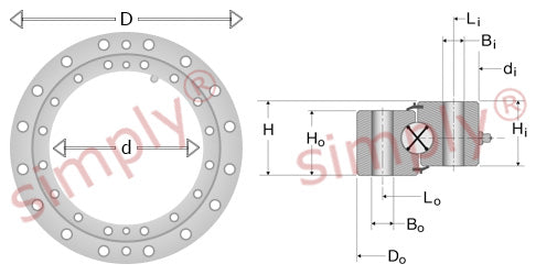 Silverthin Kaydon No Gear Slewing Ring: This slewing ring is a non-gear four-point contact bearing with a rectangular cross-section. This slewing ring has clearance. |