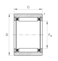 Machined Type Needle Roller with Flanges: Supplied without the inner ring for instances where a mating bearing surface already exists or an inner ring is to be used & has the benefit of flanges in the outer race to compensate for small misalignments and small side loads. Benefits: Economical replacement, needles are retained within machined flange of the outer race. |