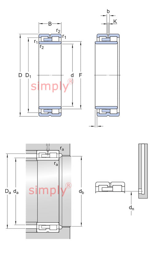 SKF Super Precision Double Row Cylindrical Roller Bearings: Double row cylindrical roller bearings SKF super-precision double row cylindrical roller bearings are manufactured as standard in the NN 30 and NNU 49 series. Both series are available with either a cylindrical or a 1:12 tapered bore (designation suffix K). In machine tool applications, cylindrical roller bearings with a tapered bore are preferred over bearings with a cylindrical bore, because the taper enables more accurate adjustment of clearance or preload during mounting.