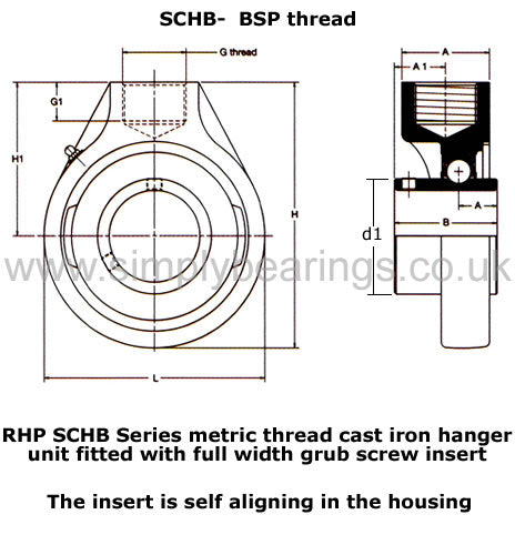 RHP SCHB Series Cast Iron Bearing Hanger Units: Cast iron hanger bearing unit supplied with a sealed full width bearing insert fitted and includes a grease nipple to facilitate re-lubrication. The bearing insert has 2 grub screws to allow tightening against the shaft after installation. |