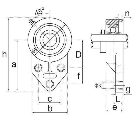 Benefits: Cost effective bearing / housing assembly, re-lubricatable, replaceable insert, grub screw fixing, food safe and approved.
