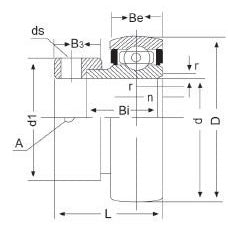 Miniature SA or RAE Series Eccentric Collar Type Insert: Sealed bearing insert with eccentric shaft locking collar and grub screws to allow tightening against the shaft once fitted.